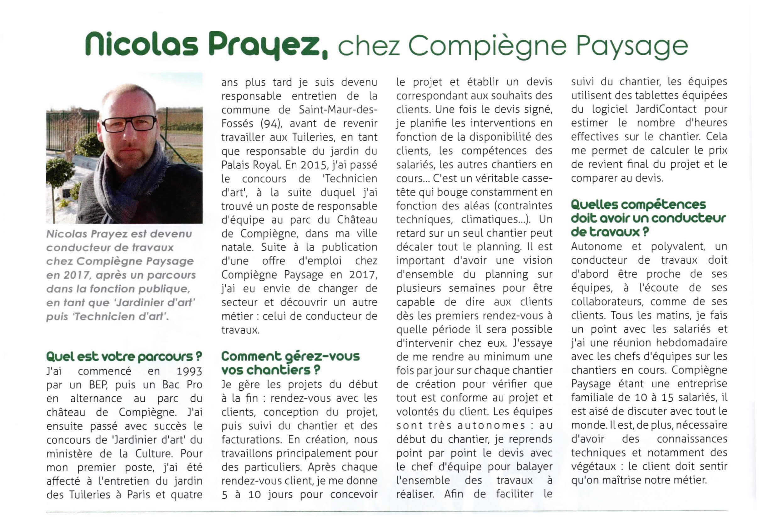 Retrouvez l’interview de notre client Nicolas Prayez, Compiègne Paysage (60) dans le dernier numéro du magazine Profession Paysagiste – N°97 mars 2019.